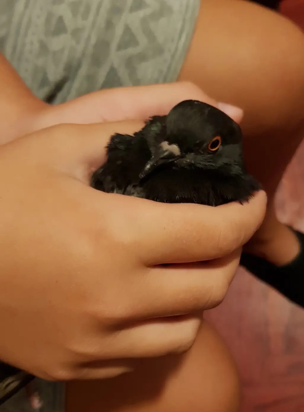 Grad je dom mnogim golubovima koji već jako dugo žive uz ljude. Zbog neodgovornog odlaganja otpada mnoge životinje često stradaju zato što pojedu komade plastike ili se zapeljaju u otpad i ne mogu se osloboditi. Ovaj je golub imao obje noge zapetljane u plastičnu nit i jako je teško hodao. Očito je već jako dugo bio zapetljan jer su mu niti bile potpuno urasle u noge koje su bile natečene i deformirane što mu je otežavalo kretanje. Kao i obično uslijedilo je hvatanje ozlijeđene životinje što često nije jednostavno jer divlje životinje zbog straha pokušavaju pobjeći. Uvijek naiđem na ozlijeđenu životinju neočekivano pa kod sebe zapravo nemam ništa što bi mi moglo olakšati nego se moram snaći s onim što imam pri ruci. Prišuljala sam mu se s leđa i bacila majicu preko njega i tako ga uspjela uloviti.